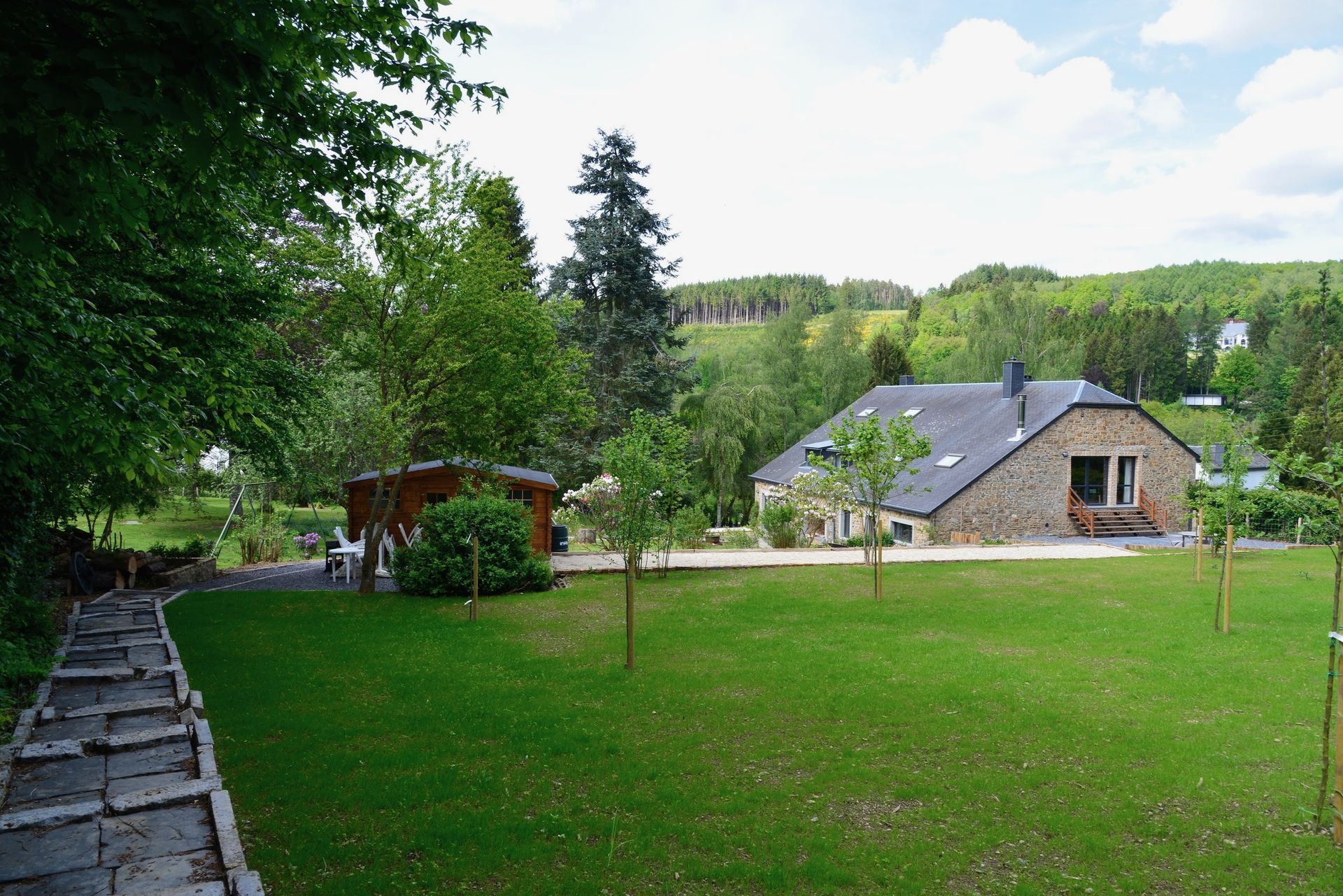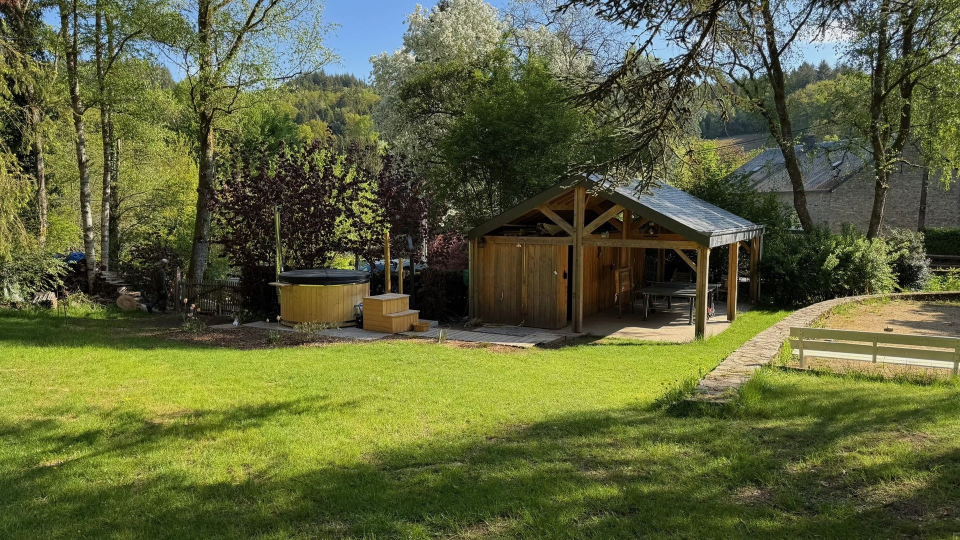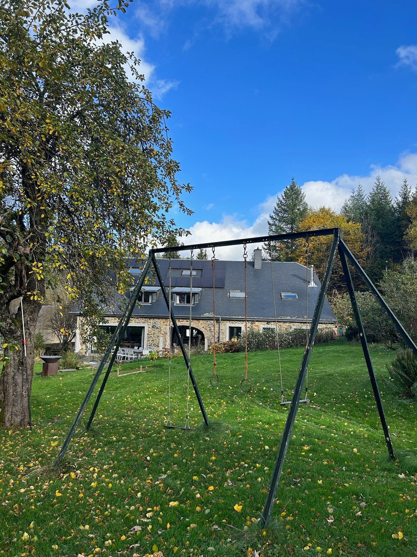 Terrasse sud, balançoires, transat, tables, braséro, barbecue, ...